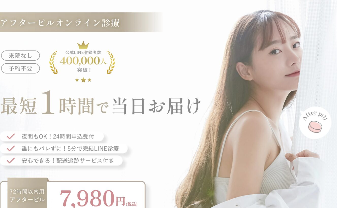| オンライン クリニック | 72時間 アフターピル | 120時間 アフターピル | 診察料 + システム使用料 | 通常 配送料 | 当日発送 の条件 (翌日以降配達) | 公式サイト |